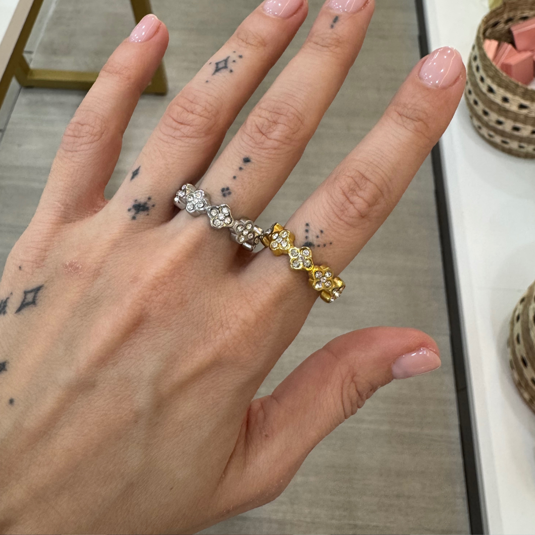 Ατσάλινο δαχτυλίδι clover με zircon σε χρυσή και ασημένια απόχρωση.