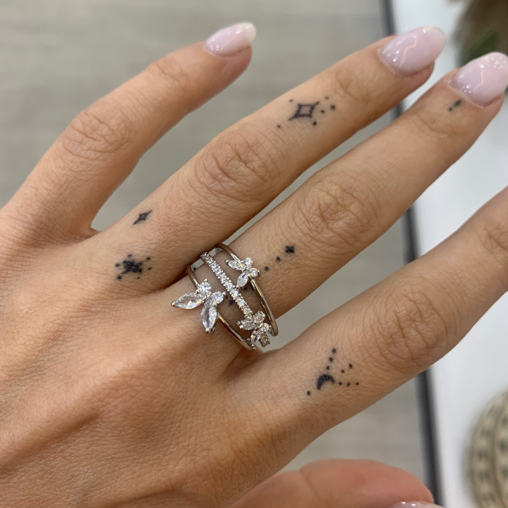 Δαχτυλίδι από ασήμι 925 ανοιγόμενο από την κάτω πλευρά, με 3D πεταλούδες  και  πέτρες zircon